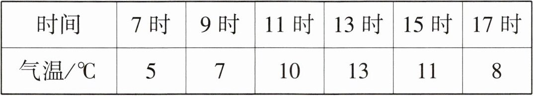 |气温/${\hspace{0pt}}^{\circ }\mathrm{C} $|5|7|10|13|11|8|