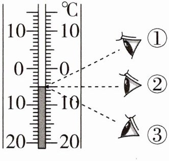 进行测量。(2)同一时间,小科在室外阴凉、通风处测得的温度是$8{\hspace{0pt}}^{\circ }\mathrm{C} $,在阳光下测得的温度是$12{\hspace{0pt}}^{\circ }\mathrm{C} $。他在天气日历中应该记录的气温是