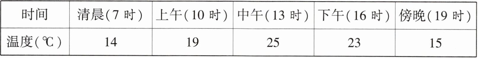 5. 三(2)班某同学测量某一天的气温,记录在下面的表格中。