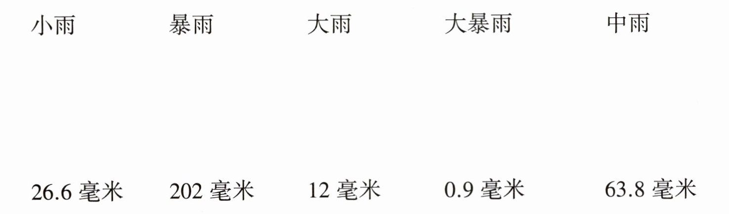 (3)小科用雨量器收集了 24 小时的降水,这些降水的高度是 12 毫米,用量筒测得它们的体积是 28 毫升,这一天的降水量应该记录为