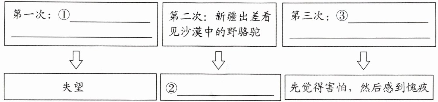 |第一次:①___________|第二次:新疆出差看见沙漠中的野骆驼|第三次:③___________|