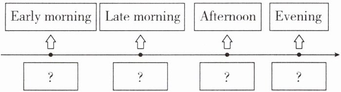 )3. Read the following events and put each event in the right box on the timeline. Which one is right?①Bingo goes to the sheep's house and leads them to the fields.