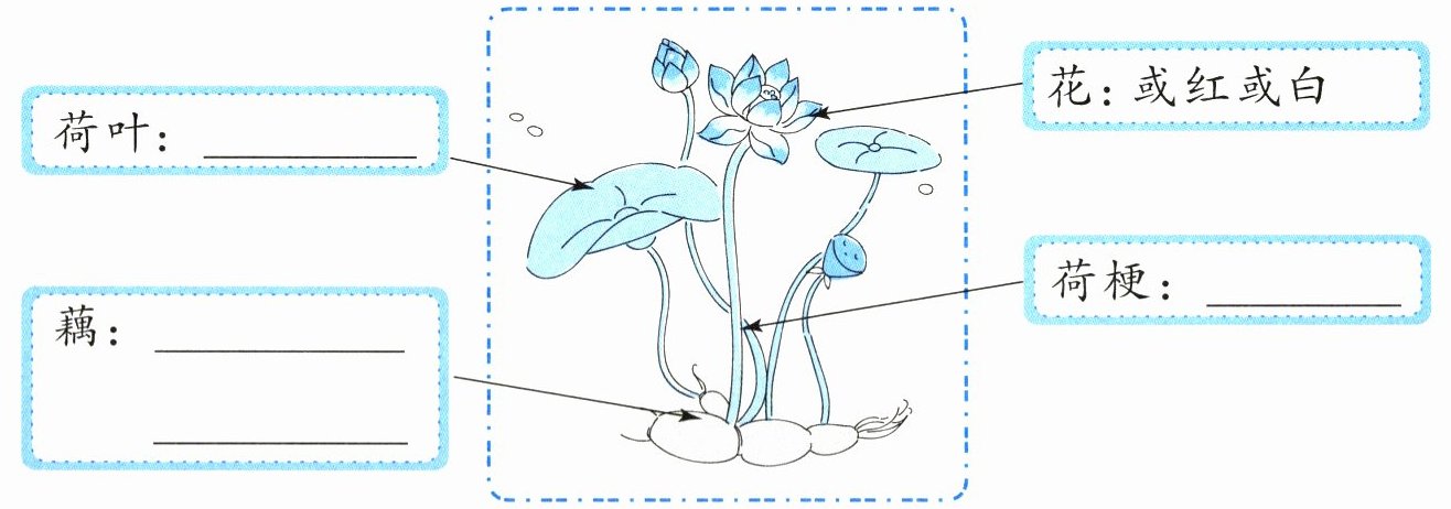 2. 根据短文内容写出荷各部位的特点。(3分)