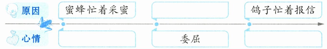原因:蜜蜂忙着采蜜→______→鸽子忙着报信 心情:______→委屈→______