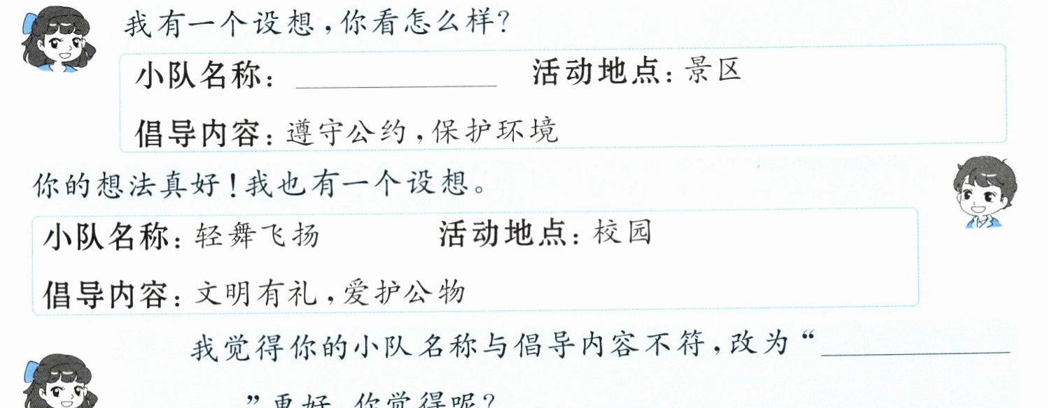 我觉得你的小队名称与倡导内容不符,改为“______”更好,你觉得呢?