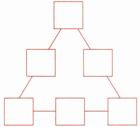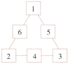 4 将1~6这6个数分别填入下图的$□$里,使每条线上3个数相加的和都等于9。