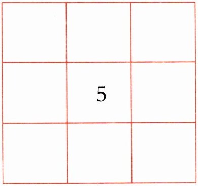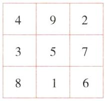 把1~4、6~9这8个数填入空格中,使每一横行、每一竖行、每一斜行3个数相加的和都等于15。