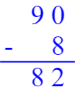 $ \begin{array}{r} 90 \\ - 8 \\ \hline \end{array} $
