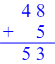 $ \begin{array}{r} 48 \\ + 5 \\ \hline \end{array} $
