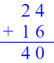 $ \begin{array}{r} 24 \\ + 16 \\ \hline \end{array} $