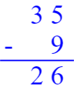 $ \begin{array}{r} 35 \\ - 9 \\ \hline \end{array} $