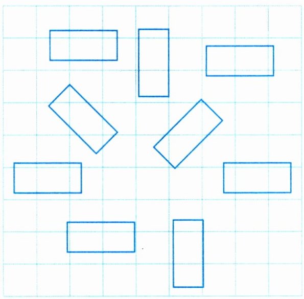 4 菲菲想和好朋友把平移后能重合的图形涂上红色。看看谁最快。