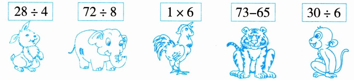 $72÷8>28÷4>73-65>1×6>30÷6$
