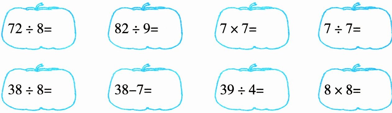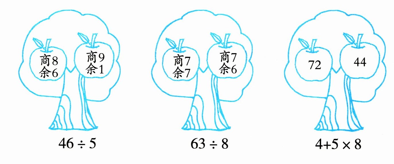 $63÷7$:由乘法口诀“七九六十三”,算出结果为$9$。