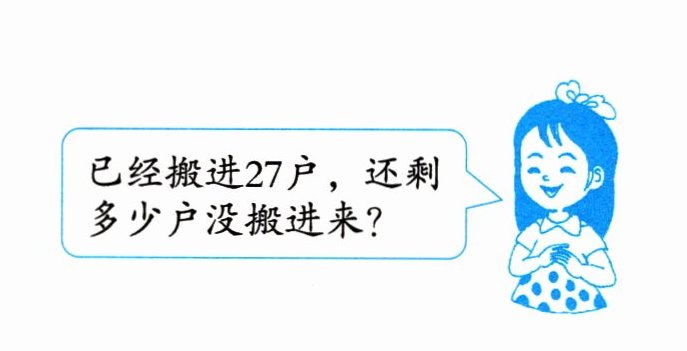 然后用总户数减去已经搬进的户数,得到没搬进的户数:$48 - 27 = 21$(户)。