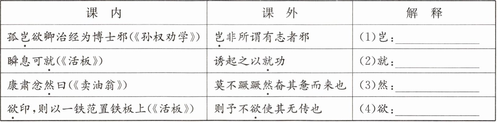 2. 读文言文要善于触类旁通,请你运用学过的知识帮助小文完成对文言词语的解释。(4分)