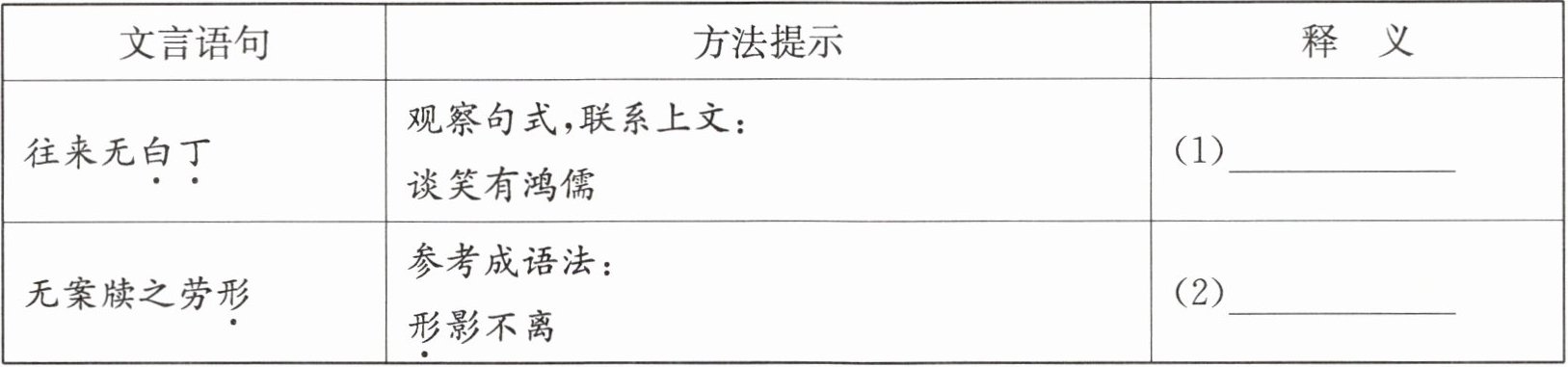 |参考成语法:形影不离|(2)______|2.把下面的句子翻译成现代汉语。(2 分)