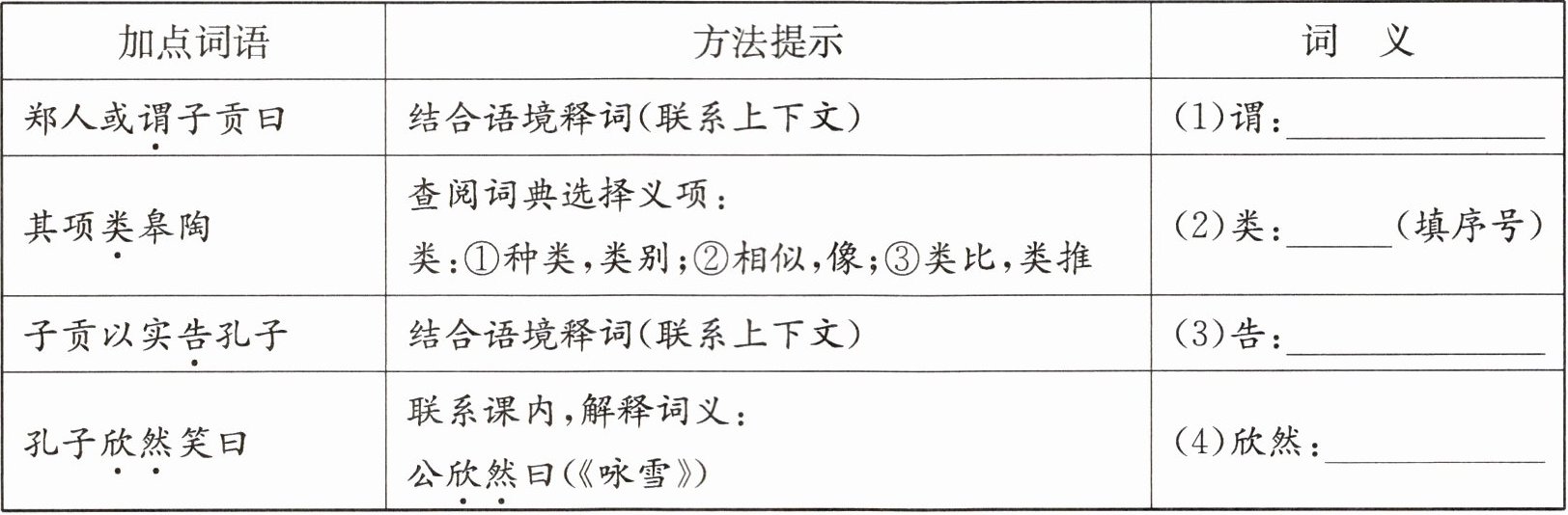 |加点词语|方法提示|词 义|