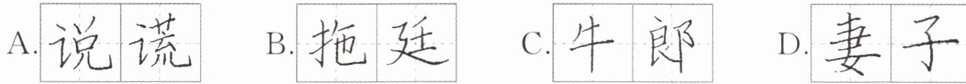 1. 牛郎和织女勤劳节俭(jiǎn jǎn),日子过得挺美满。他们看着依偎(wèi wēi)在怀里的两个孩子,感到无比幸福和快乐。