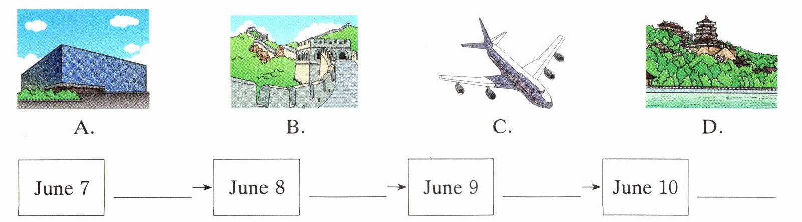 二、[新题型]根据短文内容,按照 Mary 的旅行计划为下列时间选择相应的图片。