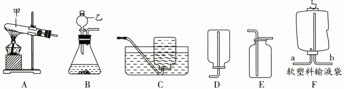 (填装置字母)。(6)如图 F,如果用软塑料输液袋收集氧气,气体应该从
