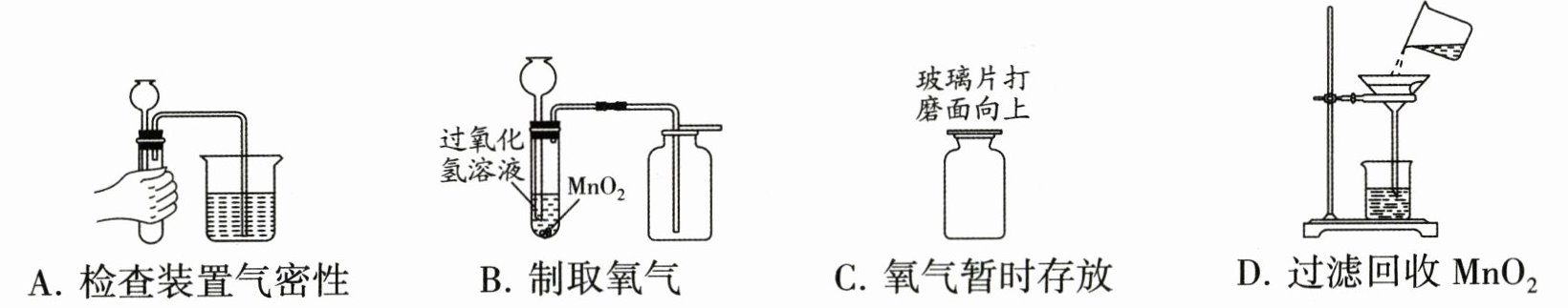 3. (2025·南通期中)下列关于过氧化氢制取氧气并回收$ MnO_2$的实验操作正确的是 (