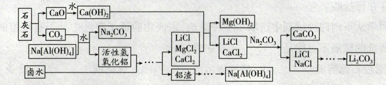 6. (2024·常州中考)从青海查尔汗盐湖提取碳酸锂$ \mathrm{(Li_{2}CO_{3})} $的一种流程如下。每100t盐湖卤水制得碳酸锂59.2kg(锂元素的提取率为80%~92%)。下列说法正确的是 (