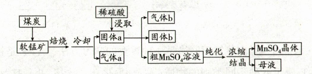 (2)加入过量的煤炭可保证软锰矿中的$ \mathrm{MnO_{2}} $充分转化为MnO,生成的气体a中除了$ \mathrm{CO_{2}} $外,还可能含有