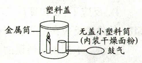 17. (4 分)如图是模拟粉尘爆炸的一个实验,在无盖小塑料筒里放入干燥面粉,点燃蜡烛,用塑料盖盖住金属筒,迅速鼓入大量空气,不久,便会听到“砰”的一声,爆炸的气浪将金属筒的塑料盖掀起。