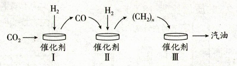 16. (7 分)(2025·洛阳期末)我国科研人员研制出一种新型催化剂,在这种催化剂作用下,二氧化碳可以转化为汽油,主要转化过程如图所示。反应Ⅰ的生成物除了 $CO$ 还有一种生活中常见的氧化物,该反应的化学方程式为