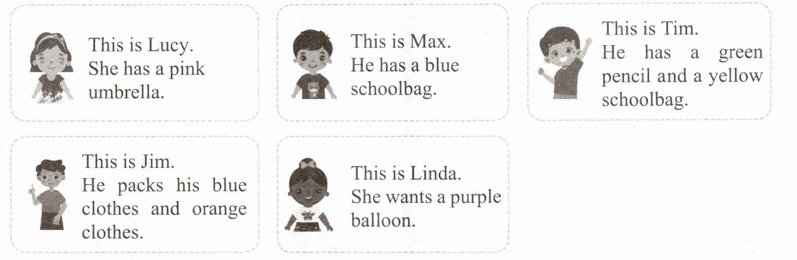 10. Read, find and colour. 读短文,找到物品,并涂颜色。