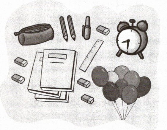 |pencil = three|one balloon and two pencils|2.