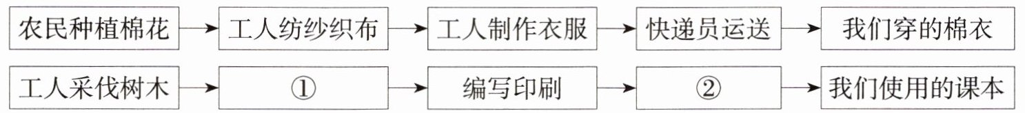 (4)参考棉衣由棉花到棉衣的过程,完成我们使用的课本到我们手中的过程。