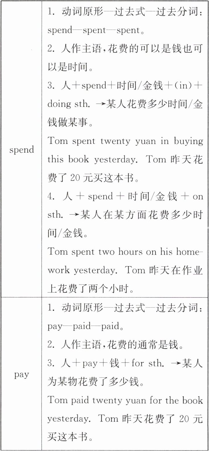 【思考】辨析四个动词“花费”:spend、pay、take、cost。