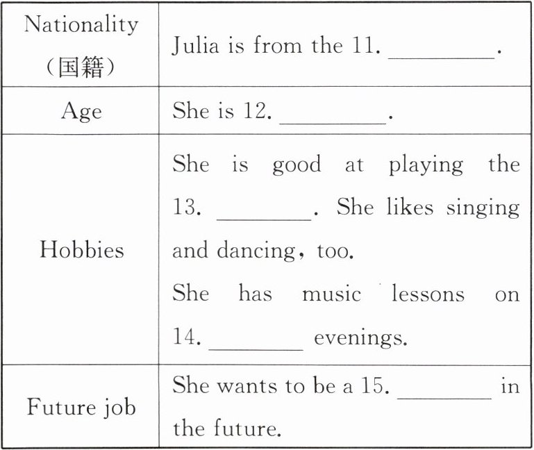 (三)听力填词:请听下面一段独白。根据所听到的内容,写出可以填入下表 11 至 15 空格中的适当单词,每空限填一词。独白读两遍。