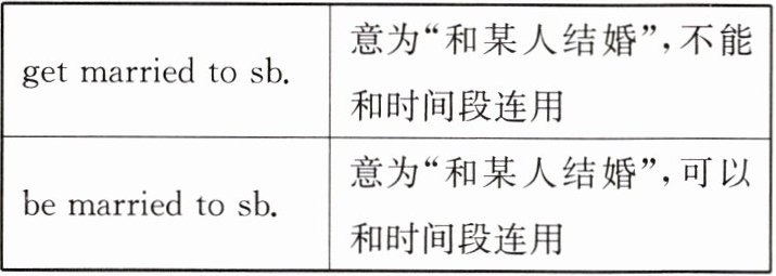 【思考】marry 意为“结婚”,是及物动词。marry sb. 意为“与某人结婚”。