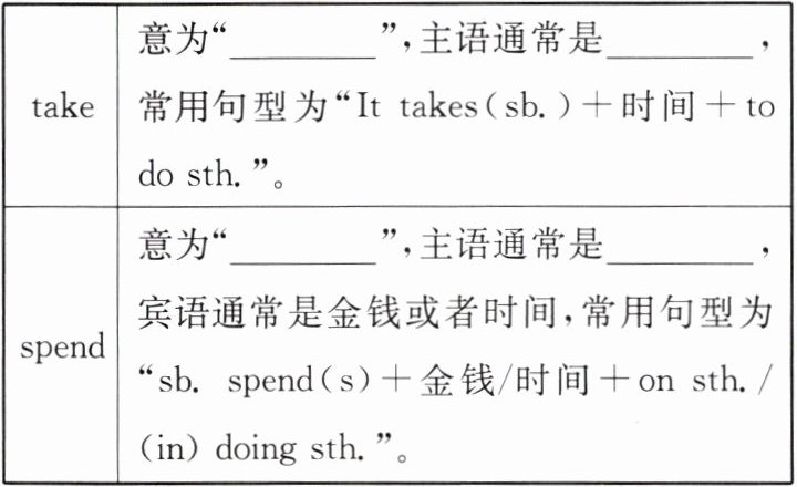 spend 意为“花费”,主语通常是“人”。