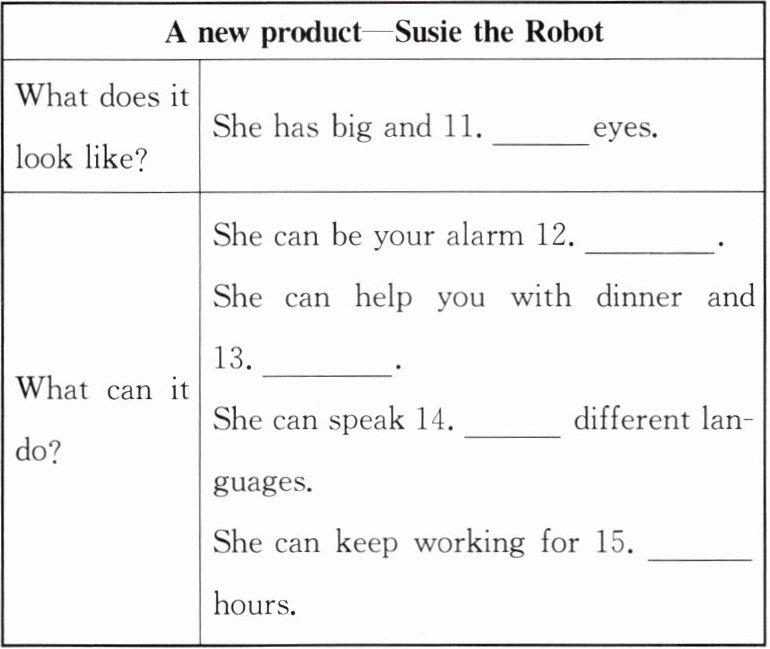 (三)听力填词:请听下面一段独白。根据所听到的内容,写出可以填入下表 11 至 15 空格中的适当单词,每空限填一词。(独白读两遍)