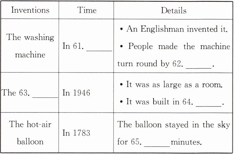 请听下面一段独白。根据所听到的内容,写出可以填入下表61至65空格中的适当单词,每空限填一词。(独白读两遍)