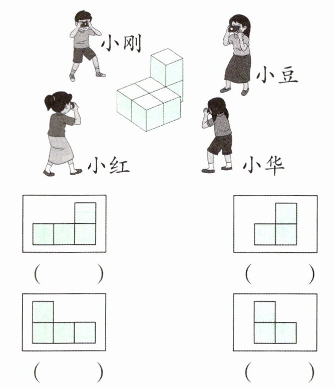 2.小华 小豆 小刚 小红 [提示]仔细观察每个人拍到的正方形的个数,注意上面一层正方形在左边还是右边。