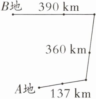 3. 李叔叔骑自行车旅行,平均每天骑135千米,按如图路线骑一个星期能不能从A在到B地?