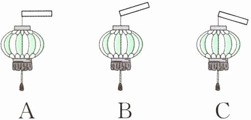 (3)传统文化 灯笼 灯笼又叫灯彩,是一种古老的汉族传统工艺品,综合了绘画、剪纸、纸扎、刺缝等工艺。灯笼不仅烘托了节日的喜庆氛围,还寄托了人们对团圆、平安的美好期盼。下面每个灯笼杆和灯笼绳形成的角中,最小的是(