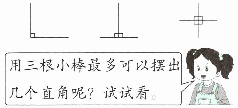 用三根小棒最多可以摆出几个直角呢?试试看。