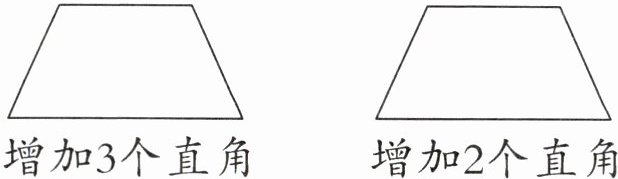 增加3个直角 增加2个直角 (画法不唯一) [提示]根据直角的意义以及梯形的特征作图即可。