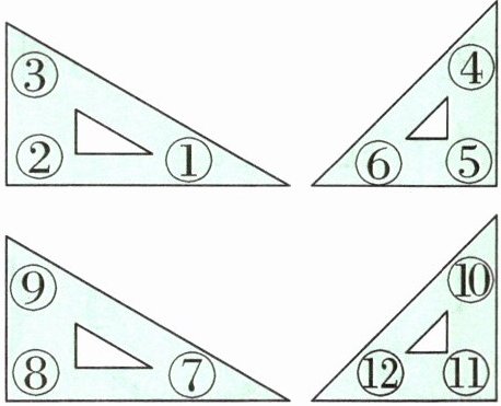 9. 新考法 操作探究 用两根小棒摆一摆,可以摆成1个直角、2个直角或4个直角,如下图: