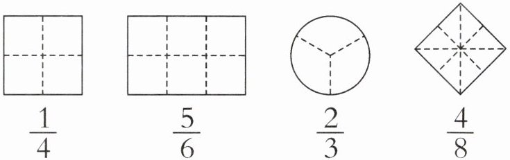 4. 下面各图中涂色部分分别占整个图形的几分之几?