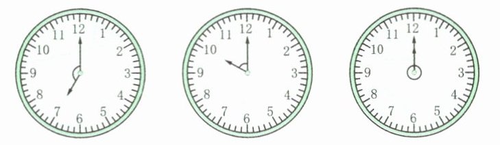 1. 钟面上时针和分针形成的角分别是什么角,填一填。