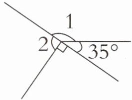 ∠1=145° ∠2=90° 【提示】由图可知,∠1+35°为平角,则∠1=180°-35°=145°。∠2+90°为平角,则∠2=180°-90°=90°。