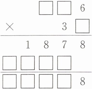 6.完整的算式为:626×33=20658 【提示】通过积的个位上是8可以判断第二个因数的个位上是3或8;再通过1878的十位上是7可知第二个因数的个位上是3;再根据第二个因数的值