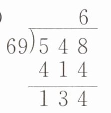 (2)$\begin{array}{r} 6\\ 69\enclose{longdiv} {548}\\ 414\\ \hline 134\end{array} $